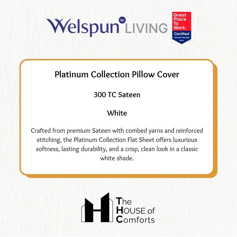 The classic white shade blends seamlessly with any bedroom décor. Reinforced stitching provides strength and durability to the hems, guaranteeing lasting use and a professional finish. The Platinum Collection pillowcases are a testament to Welspun’s commitment to quality and comfort.