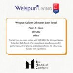 Indulge in the ultimate bath towel experience with the Welspun Golden Collection. Crafted from the finest quality cotton, this 550 GSM bath towel boasts exceptional absorbency, quickly drying you off and leaving you feeling refreshed.