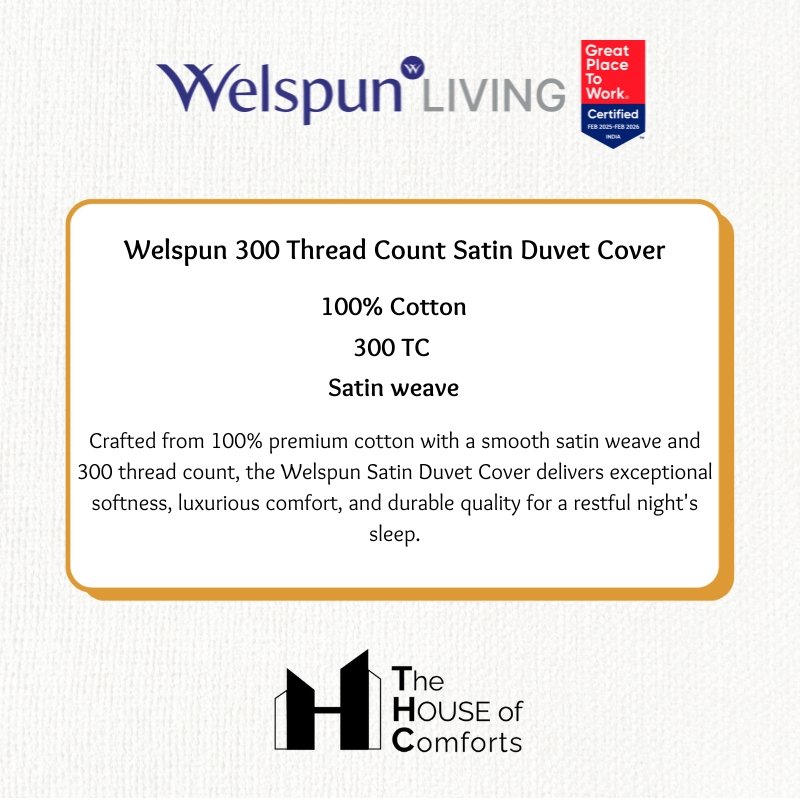 Indulge in luxurious comfort with the Welspun 300 Thread Count Satin Duvet Cover. Crafted from 100% premium cotton with a smooth satin weave, this cover drapes beautifully and feels incredibly soft against your skin. The high thread count (300) ensures a dense, durable fabric that will last for years to come, while the satin finish adds a touch of elegance to your bedroom. Perfect for a restful night’s sleep.