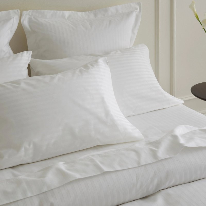 Elevate your sleep experience with the Welspun 320 Thread Count Satin Stripe Pillowcase. This luxurious pillow cover features a refined 2cm wide stripe design, crafted from a smooth satin stripe weave for a silky-soft touch. The blend of 60% cotton and 40% polyester provides a comfortable and durable feel, while the high 320 thread count ensures a premium feel and a sophisticated look.